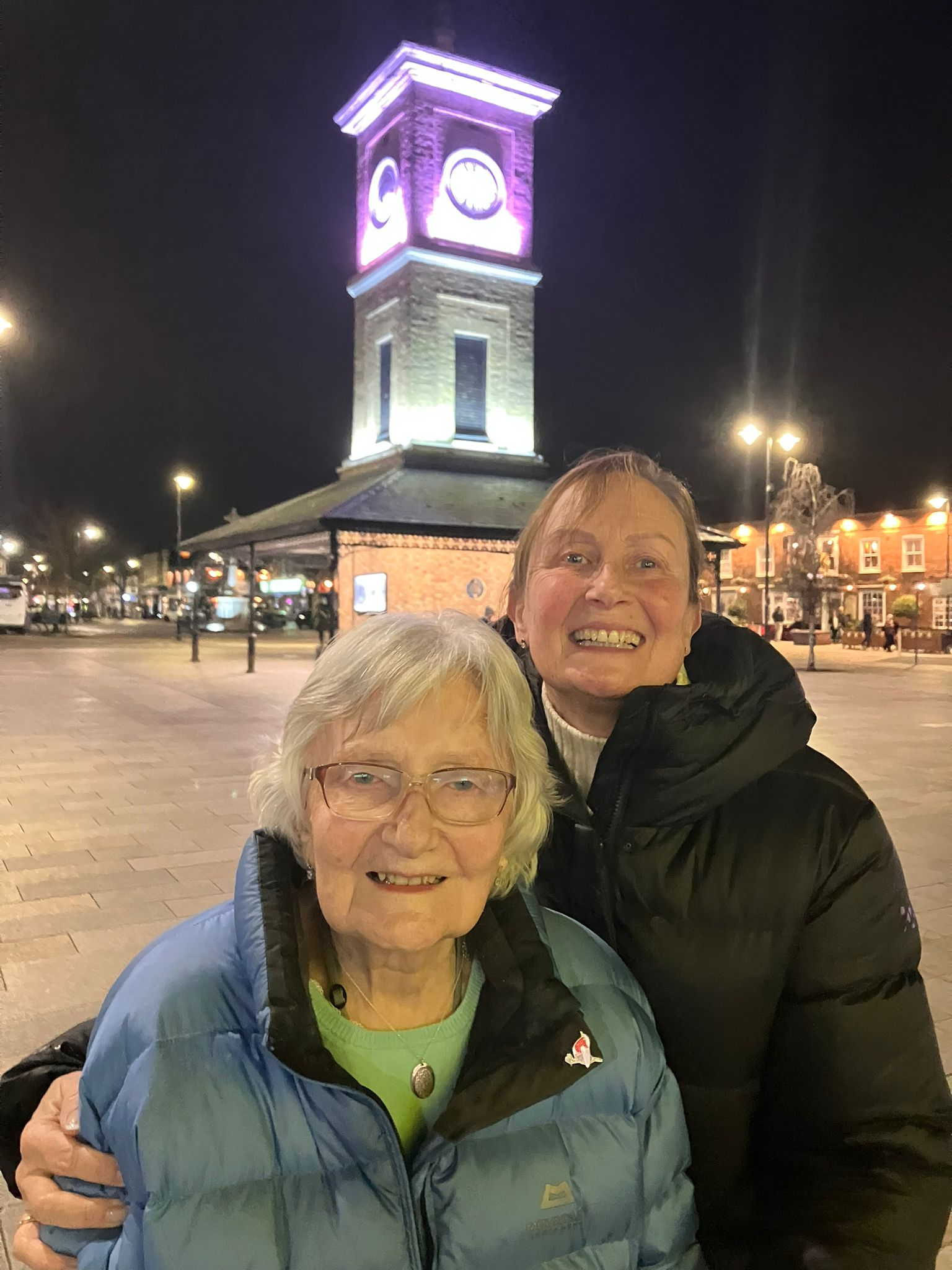 On the evening of Tuesday 3rd March, Cathy surprised her and Andy’s Mum, who still lives in Hoddesdon at the age of 91, with a trip to the clock tower to see the lighting in place.